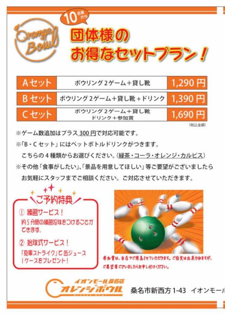ボウリング2ゲーム+貸靴+ドリンク+参加賞